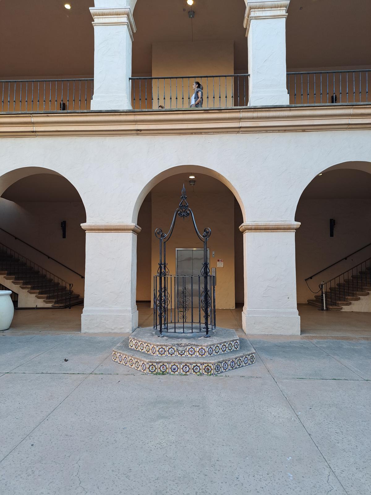 42. Внутри здания классический испанский дворик – центральный фонтан, испанские арки и плиточные декорации.