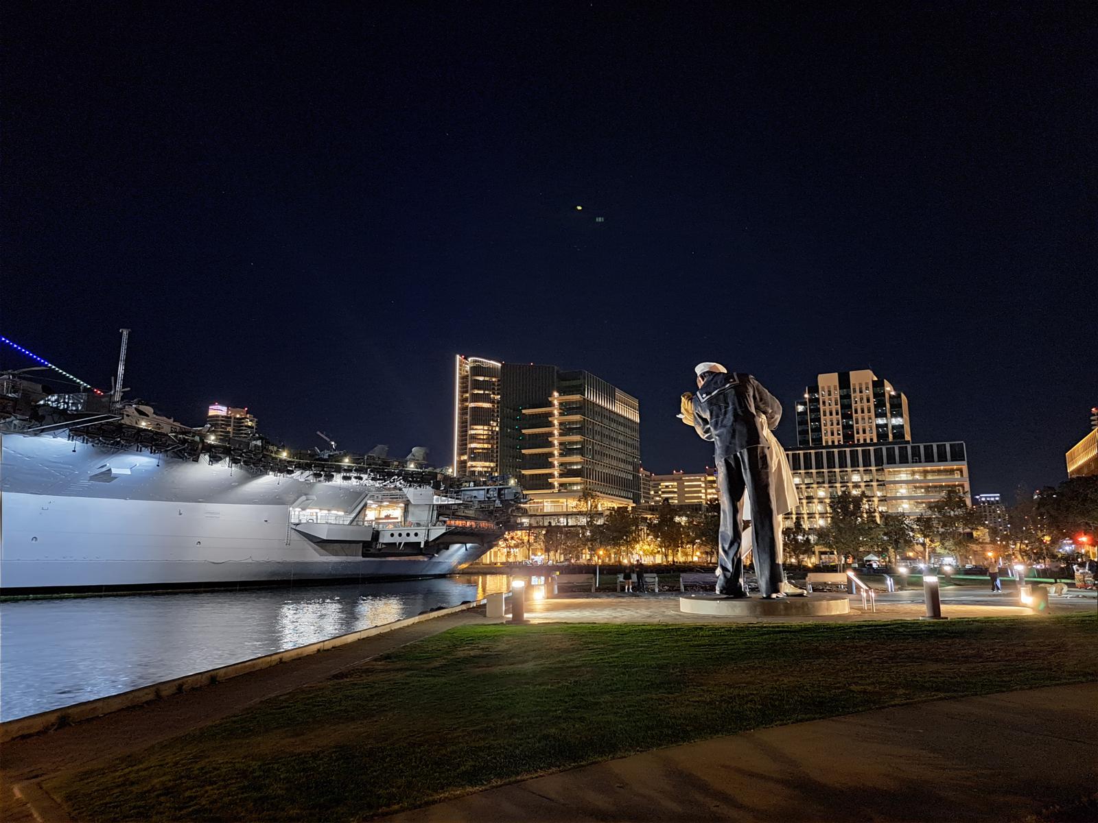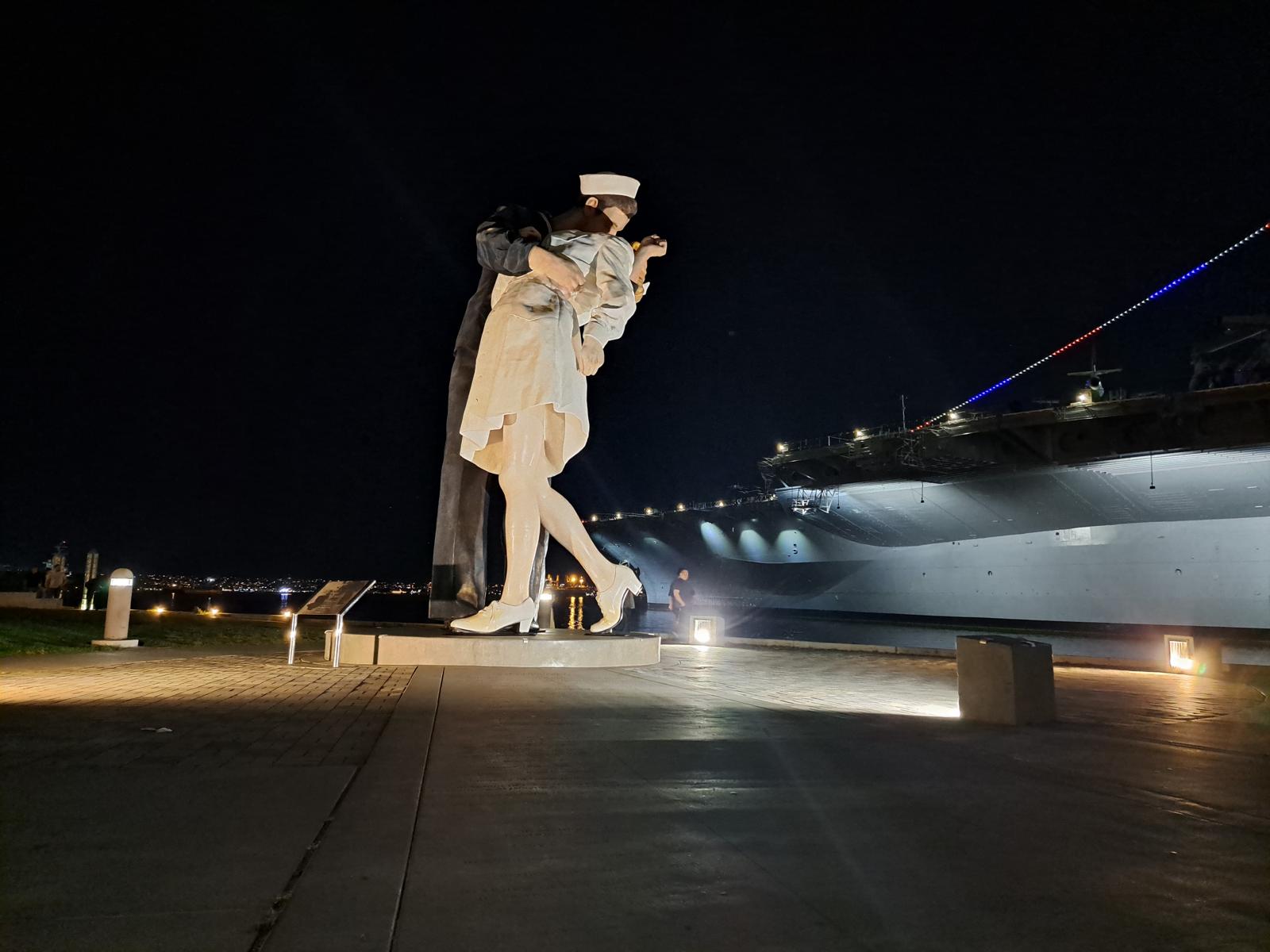 68. Статуя «безоговорочная капитуляция», на фоне авианосца Midway.