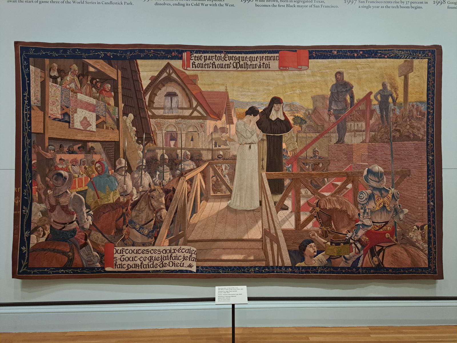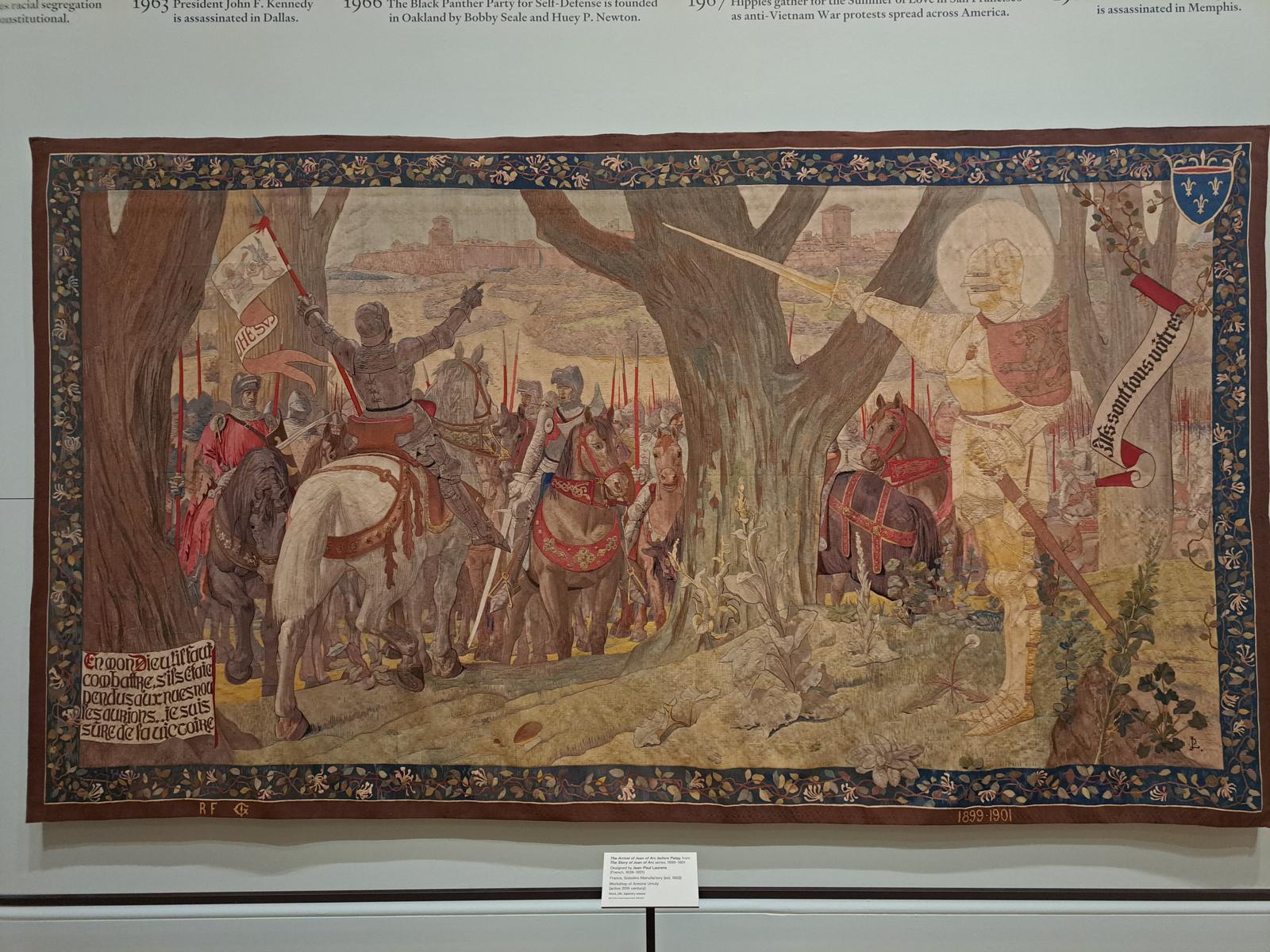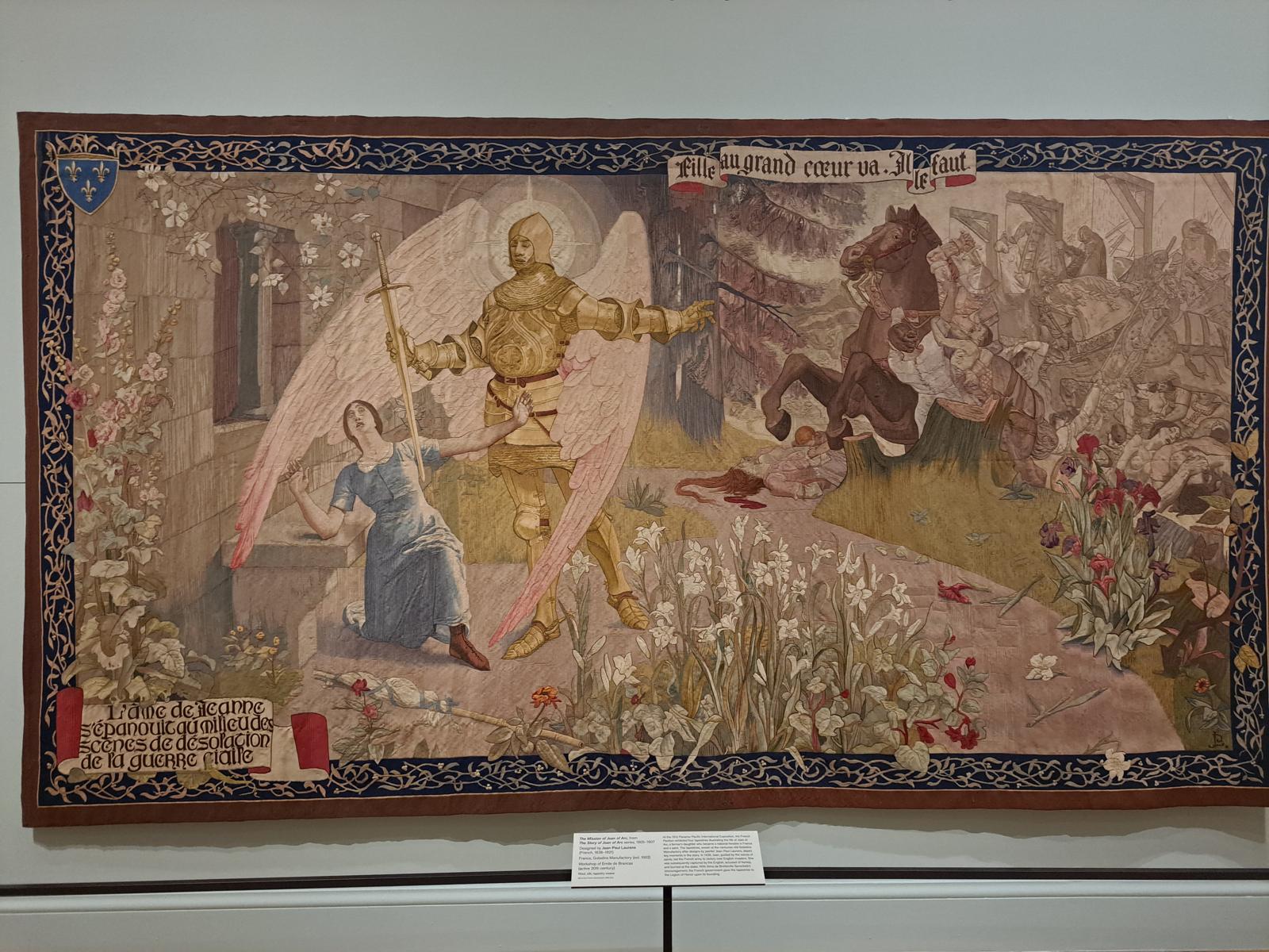 74. А это первый из трёх гобеленов описывающий историю Жанны д’Арк. Ангел явился Жанне, подарил меч и сказал что пора показать англичанам кузькину мать. Выражение лица Жанны великолепно. Я бы назвал этот гобелен – “Жанна в шоке”.
